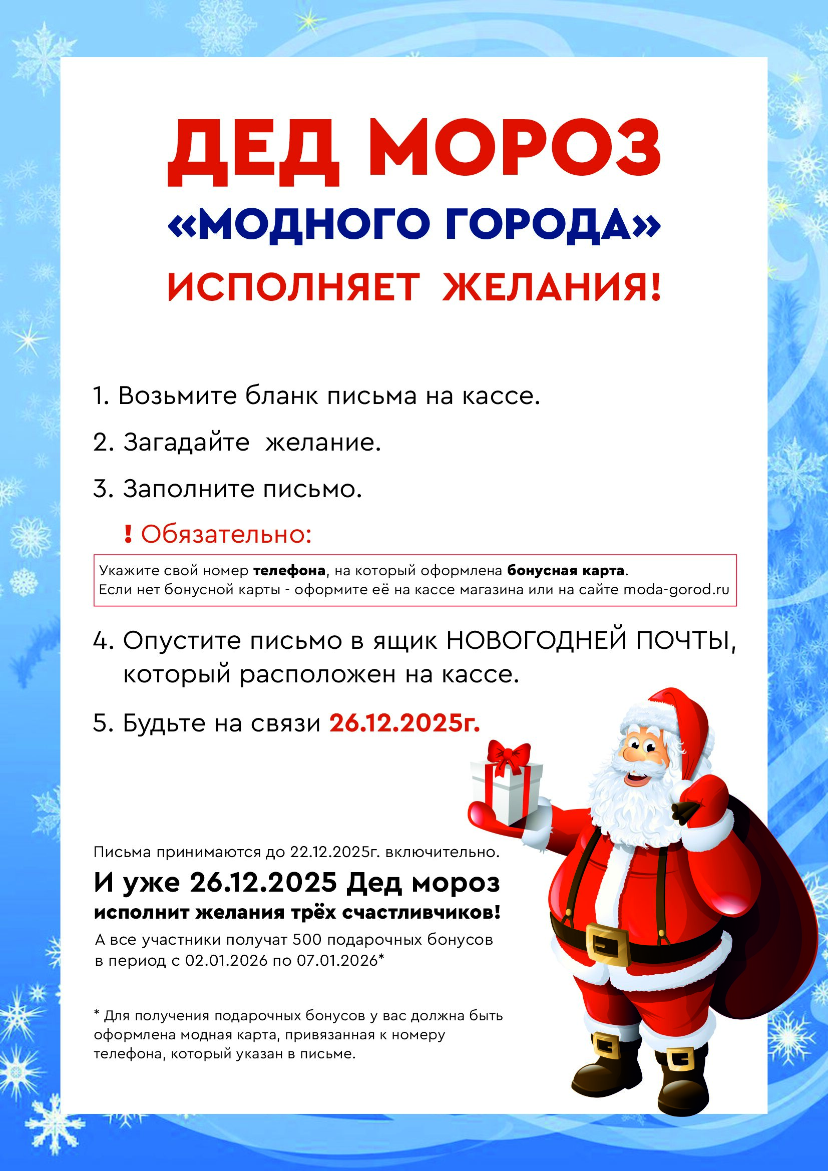 Модный Город оставляет за собой право вносить изменения в данные правила без уведомления держателей. Подробную информацию можно получит на сайте www.moda-gorod.ru или по почте info@moda-gorod.ru